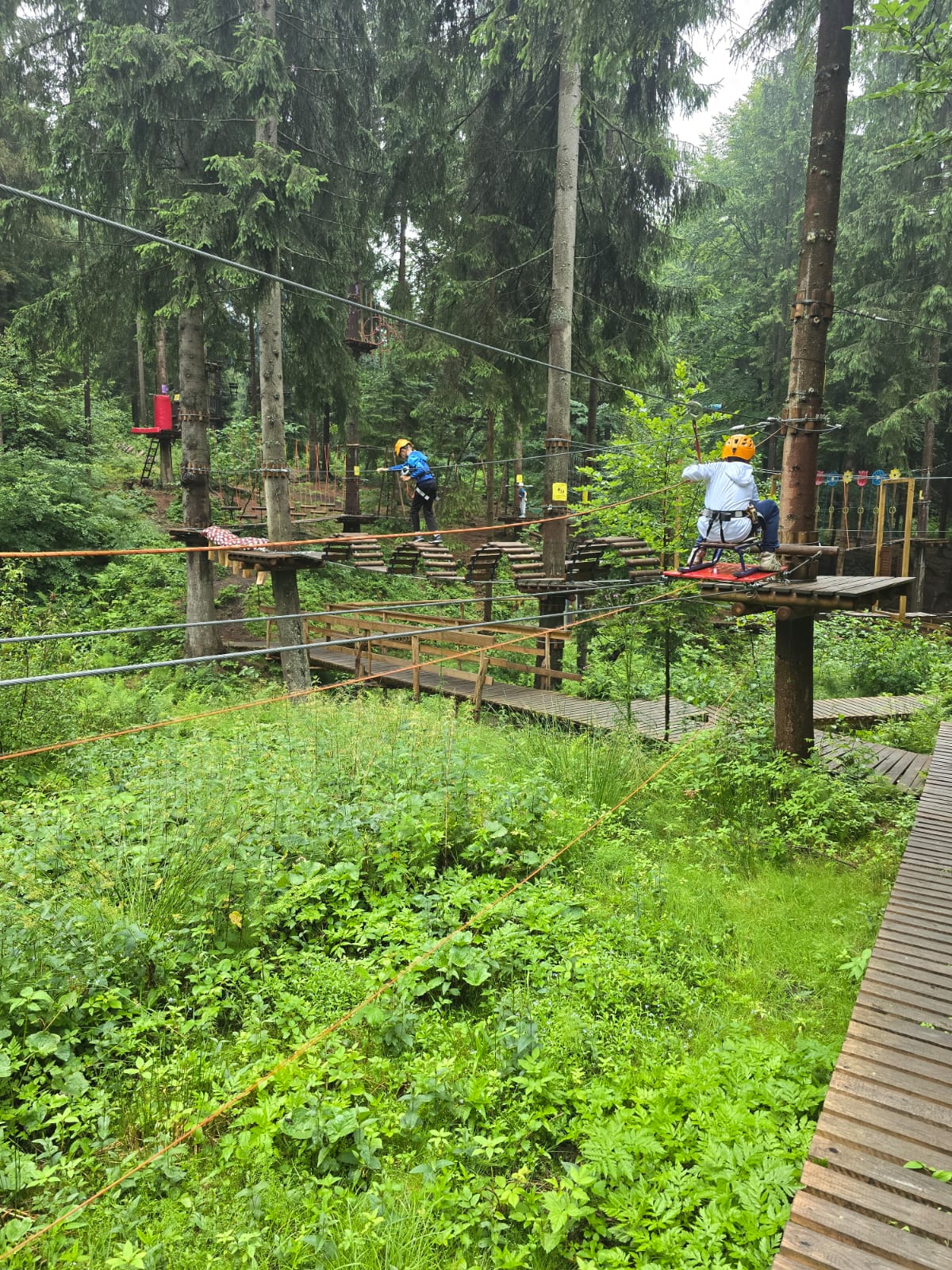 A pogoda? Choć deszcz próbował nas postraszyć, to w koronach drzew w ogóle go nie czuliśmy. Było wręcz magicznie – jakbyśmy przenieśli się do zielonego świata, w którym rządziły tylko radość i dobra zabawa.