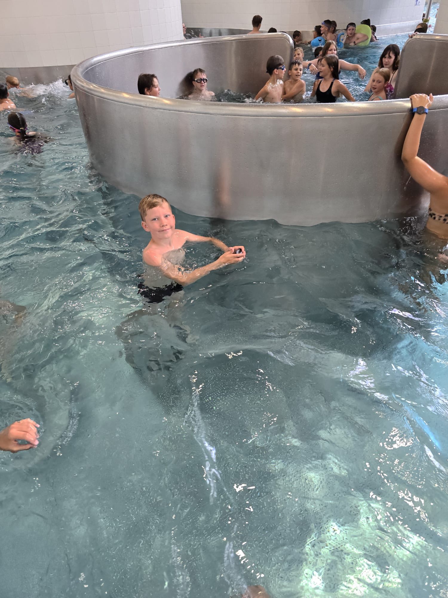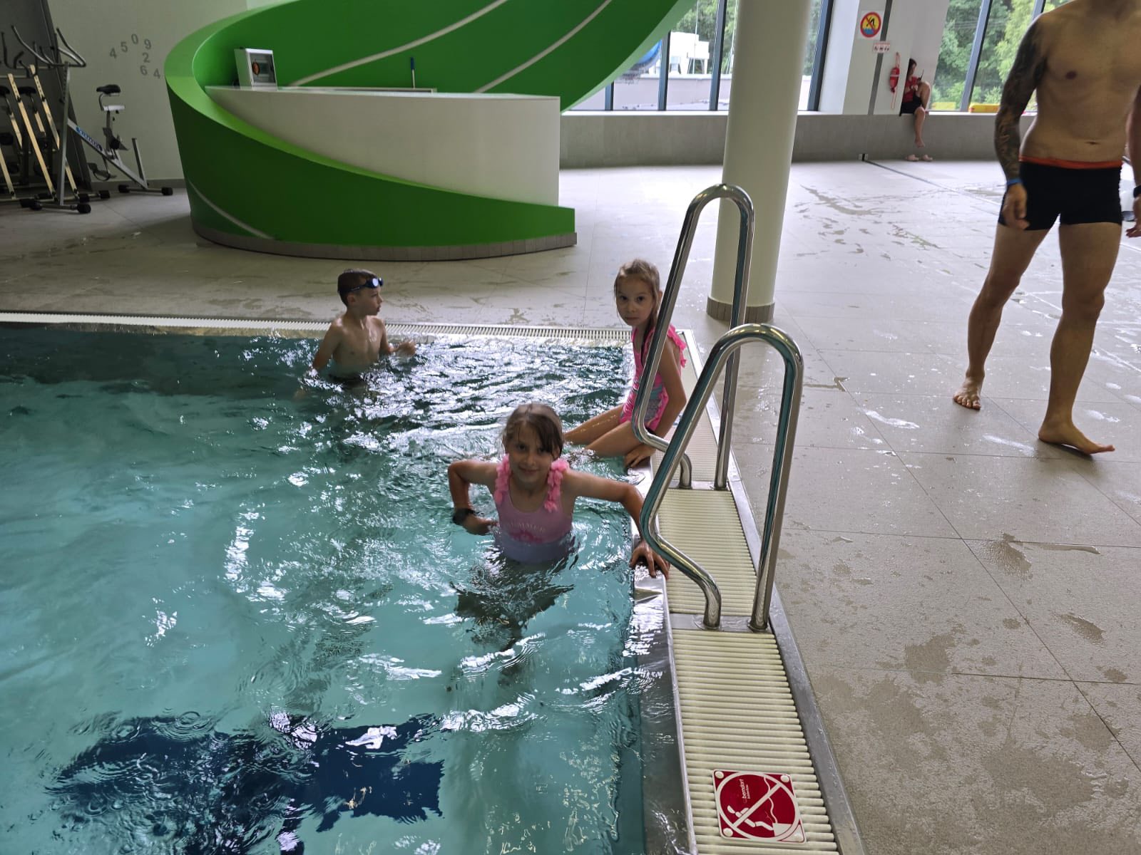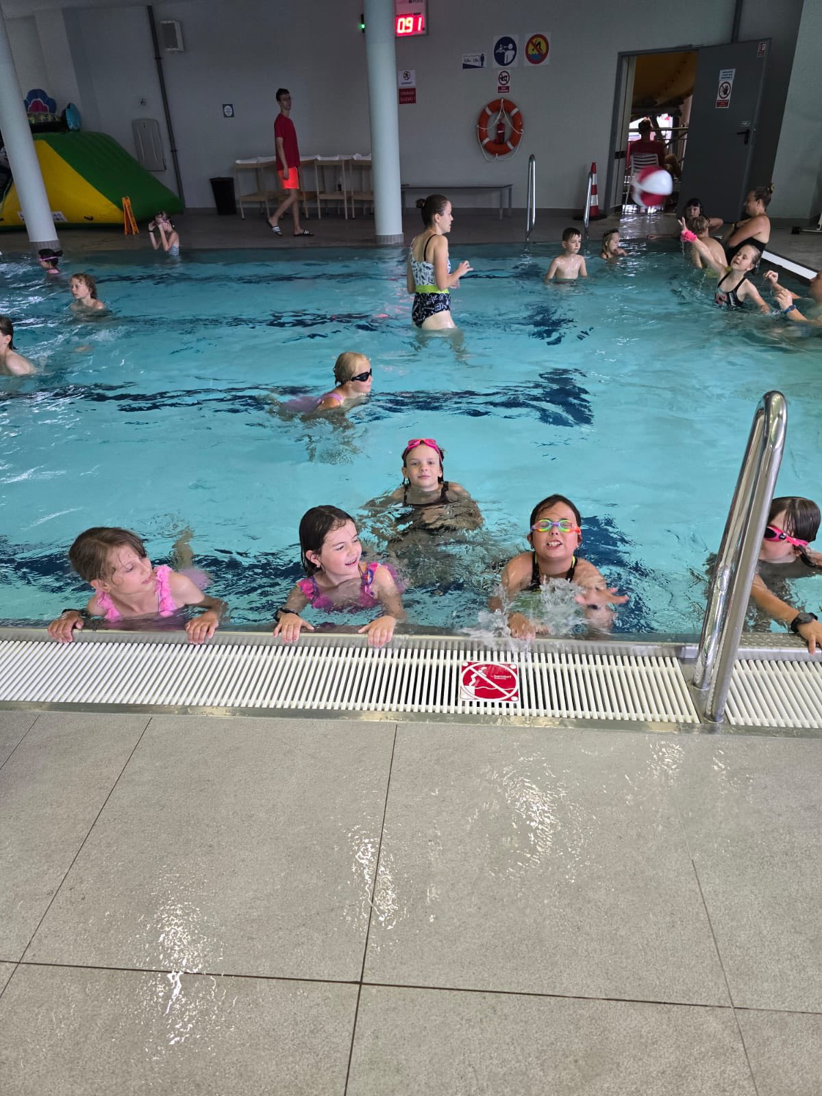 Trzeci dzień naszych półkolonii upłynął pod znakiem wodnych atrakcji i świetnej zabawy. Tym razem wybraliśmy się do Tychów, gdzie odwiedziliśmy tamtejszy Aquapark. Na początek dzieci wzięły udział w zajęciach w Wodnej Akademii, gdzie spędziliśmy aż półtorej godziny. Był to czas pełen twórczych i ciekawych aktywności – mali uczestnicy mieli okazję poznawać tajniki wody i jej właściwości poprzez różnorodne eksperymenty i zabawy edukacyjne. Budowali małe tamy i kanały, sprawdzali, co pływa, a co tonie, a także bawili się specjalnymi konstrukcjami wodnymi, które pozwalały sterować przepływem wody. To była wspaniała okazja, by poprzez zabawę rozwijać ciekawość świata i logiczne myślenie. Po solidnej dawce wodnej nauki przyszła pora na czystą radość i relaks – przenieśliśmy się na baseny rekreacyjne, gdzie dzieci mogły w pełni korzystać z wodnego szaleństwa. Ślizgawki, fontanny, bicze wodne i masaże sprawiły im ogromną frajdę. Największym hitem okazała się leniwa rzeka. Był też czas na wspólne zabawy w berka w wodzie oraz na krótkie, spontaniczne zawody w pływaniu. Dzieci z zapałem pomagały sobie wzajemnie, dopingowały i cieszyły się każdą chwilą spędzoną razem.