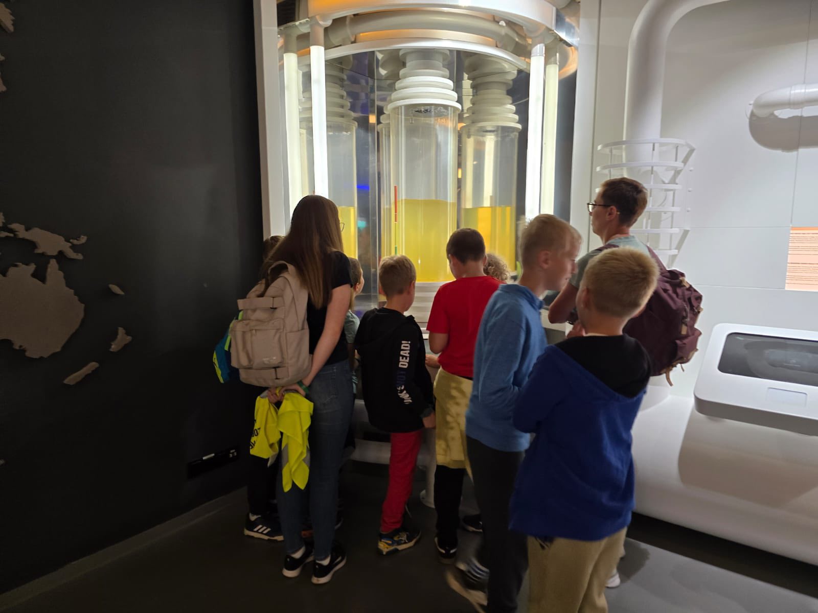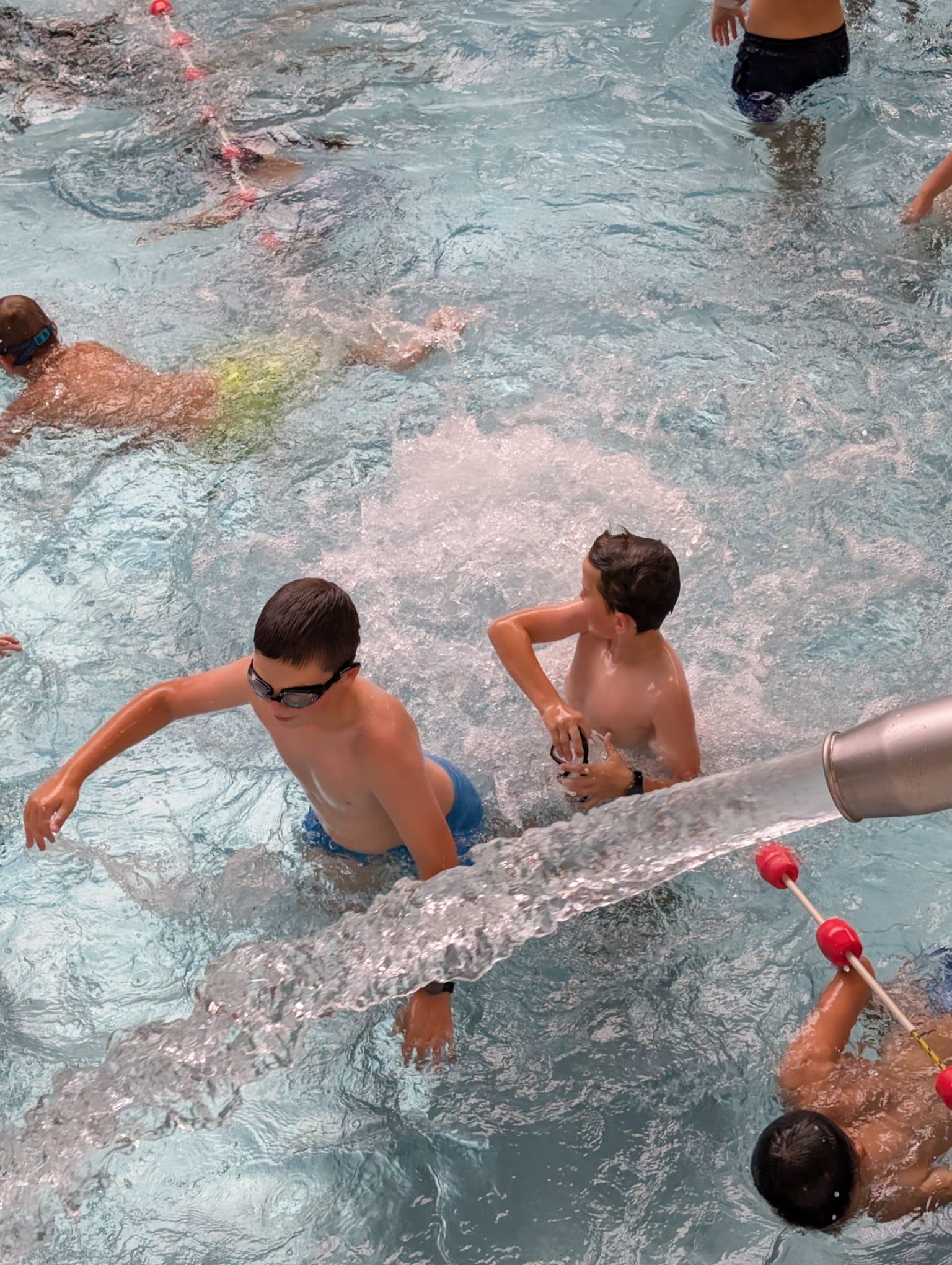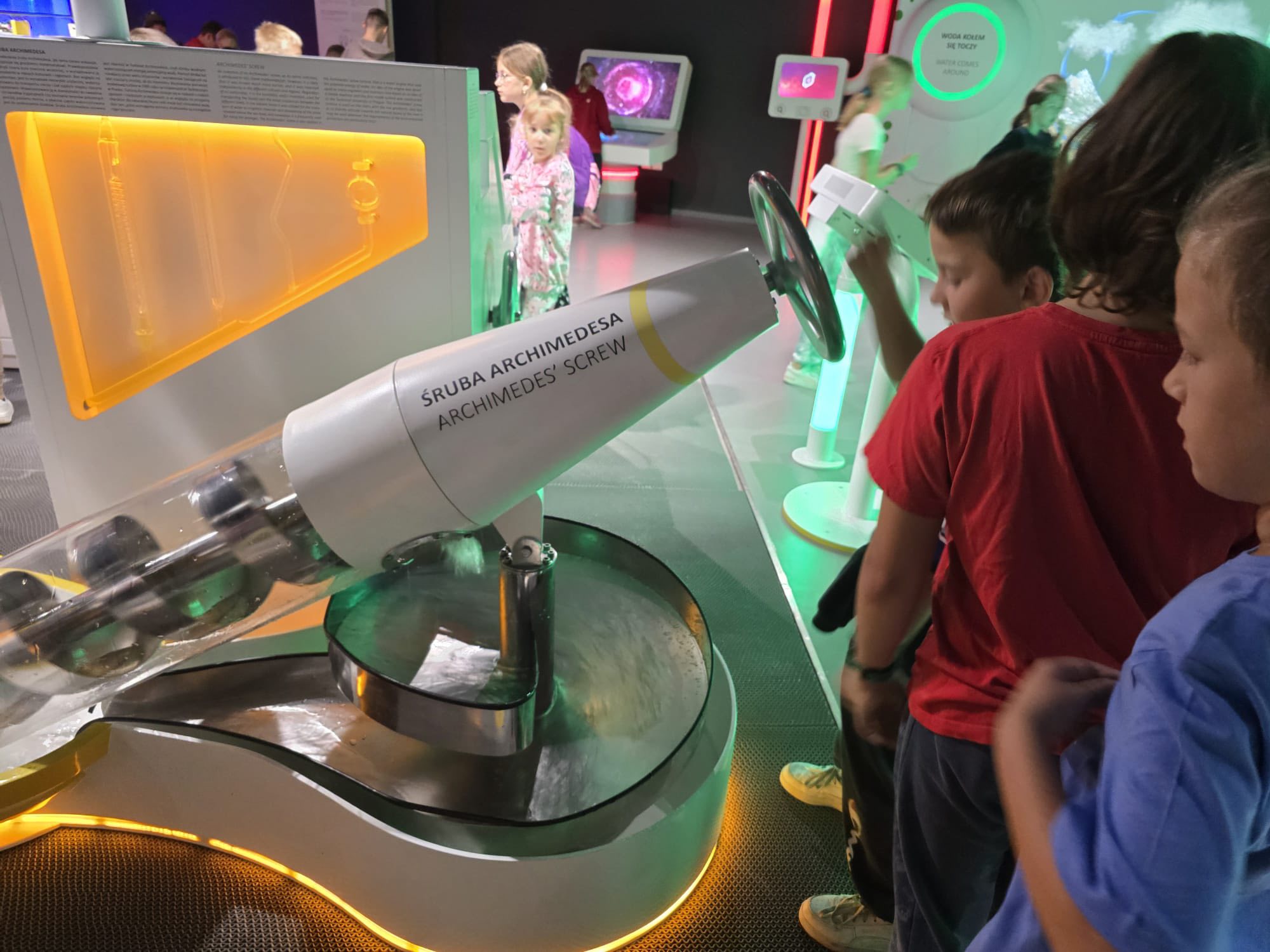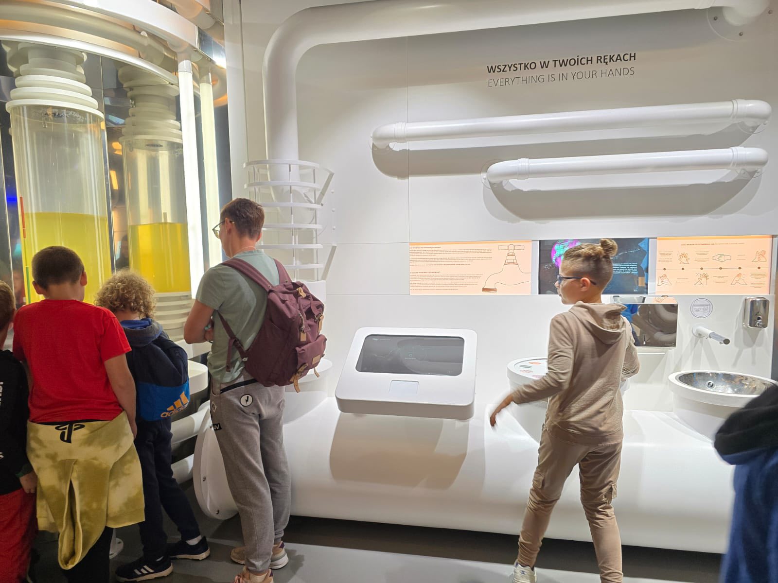 Trzeci dzień naszych półkolonii upłynął pod znakiem wodnych atrakcji i świetnej zabawy. Tym razem wybraliśmy się do Tychów, gdzie odwiedziliśmy tamtejszy Aquapark. Na początek dzieci wzięły udział w zajęciach w Wodnej Akademii, gdzie spędziliśmy aż półtorej godziny. Był to czas pełen twórczych i ciekawych aktywności – mali uczestnicy mieli okazję poznawać tajniki wody i jej właściwości poprzez różnorodne eksperymenty i zabawy edukacyjne. Budowali małe tamy i kanały, sprawdzali, co pływa, a co tonie, a także bawili się specjalnymi konstrukcjami wodnymi, które pozwalały sterować przepływem wody. To była wspaniała okazja, by poprzez zabawę rozwijać ciekawość świata i logiczne myślenie. Po solidnej dawce wodnej nauki przyszła pora na czystą radość i relaks – przenieśliśmy się na baseny rekreacyjne, gdzie dzieci mogły w pełni korzystać z wodnego szaleństwa. Ślizgawki, fontanny, bicze wodne i masaże sprawiły im ogromną frajdę. Największym hitem okazała się leniwa rzeka. Był też czas na wspólne zabawy w berka w wodzie oraz na krótkie, spontaniczne zawody w pływaniu. Dzieci z zapałem pomagały sobie wzajemnie, dopingowały i cieszyły się każdą chwilą spędzoną razem.