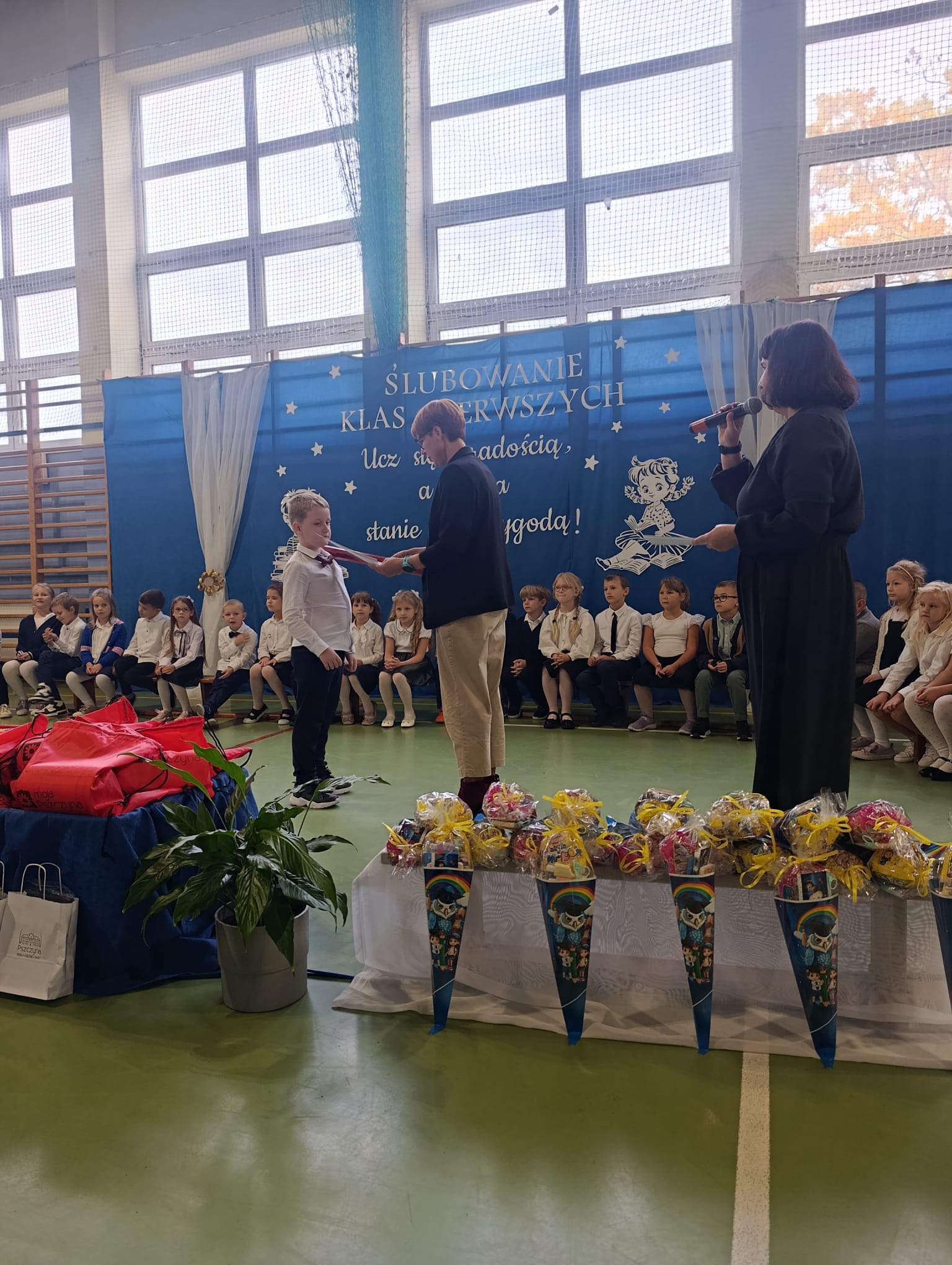 uroczyste pasowanie na ucznia, którego dokonała Pani Dyrektor Marlena Śmieja.